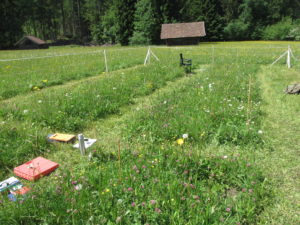 Während sich die unterirdische Produktivität (Gesamtwurzelbiomasse/-dichte) nicht signifikant zwischen den Behandlungen unterschied, war die vertikale Verteilung der Wurzeln deutlich verschieden: Gemeinschaften, in denen Kräuter oder Leguminosen zuerst ausgesät wurden, wuchsen deutlich tiefer in den Boden als Gemeinschaften mit einer frühen Gräseraussaat. Diese Erkenntnisse könnten, wenn sie auch in anderen Graslandschaften zu finden sind, ein nützlicher Weg sein, um Pflanzengemeinschaften mit tieferen Wurzeln zu schaffen, die besser an Dürren angepasst sind. Weitere Forschungen im dritten POEM-Experiment (das im Jahr 2025 eingerichtet wird) werden diese Frage untersuchen. Hier werden Minirhizotronen im Boden installiert, mit denen die Forscher prüfen können, ob es einen wiederholbaren Effekt der Reihenfolge der Ankunft auf die Wurzelverteilung gibt. Ähnliche Ergebnisse in einem kontrollierten Experiment (Alonso-Crospo et al. 2022 Oikos) sind vielversprechend, aber die Forschenden müssen sich die Mühe machen, dasselbe Experiment noch einmal auf dem Feld durchzuführen, um zu wissen, inwieweit diese Ergebnisse verallgemeinerbar sind.